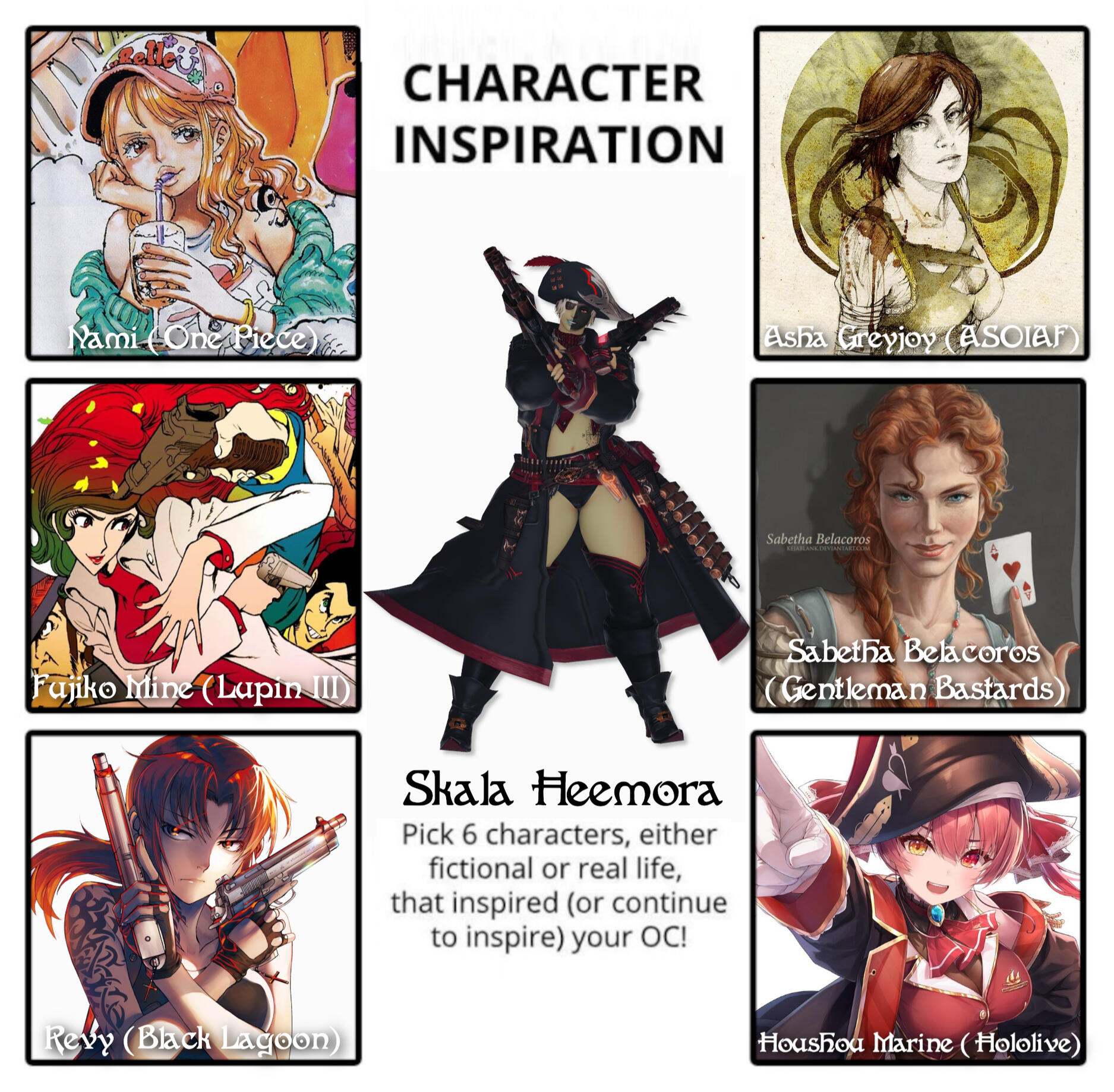 -Skala, when asked if she's doing anything this weekendA seasoned pirate, Skala is a free spirit who loves all things adventure. She dreams of seeing all the wonders the world of Hydaelyn has to offer, and revels in the scraps and the detours she gets into along the way. She loves adventure, but she also loves shiny things, particularly jewels and machines. She also loves to tinker, inventing all kinds of gadgets of various effectiveness. She even fashioned for herself a pair of Aether-fueled pistols she affectionately calls "me darlin' Scrappers."Skala can very selfish, as well as greedy. When she spies something she wants, she'll do anything to get it, whether it's a shiny piece of treasure, some machine part she wants, or even a man who's caught her eye. She's a woman who lives true to her own desires, sometimes without regard for the people around her.However, she also highly values friendship and camaraderie. When she considers someone a friend, she will do everything in her power to support their freedom the same way she would her own.