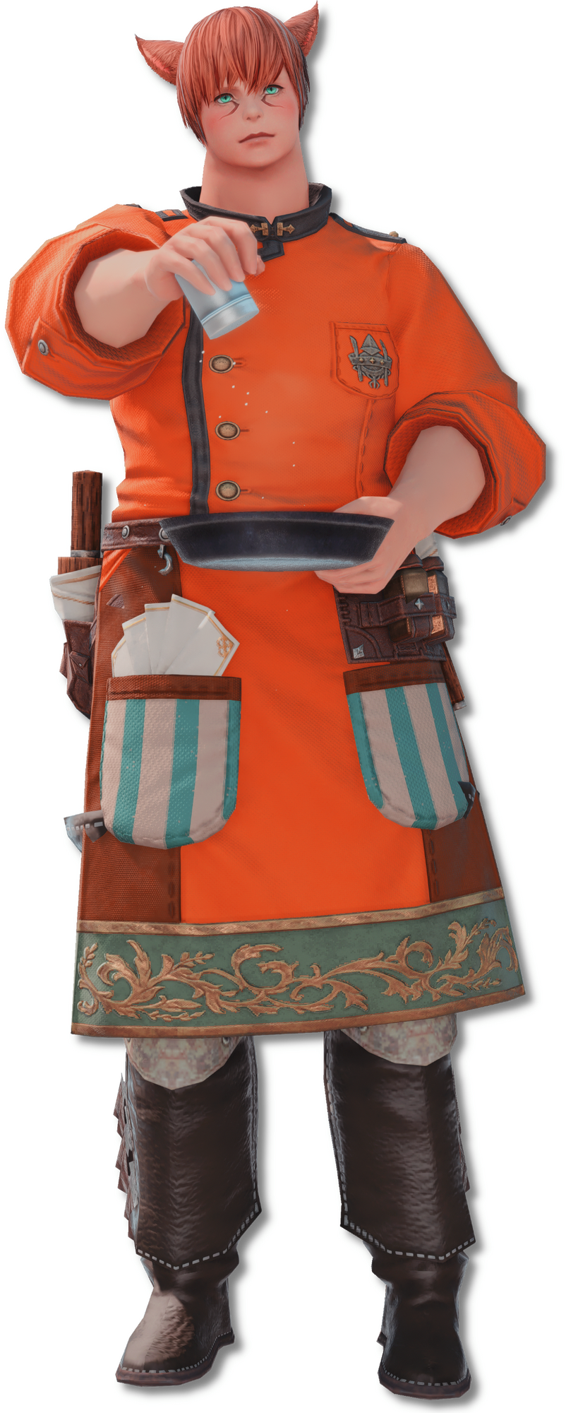 Hobb once dreamed of cooking at Limsa Lominsa's legendary Bismarck, but was banned from the restaurant for good after a misunderstanding. Bereaved, he was unsure what to do until Skala happened to taste some of his food. Finding it delicious, she knew she wanted him to be the cook for her crew, and having nowhere to go, he accepted.